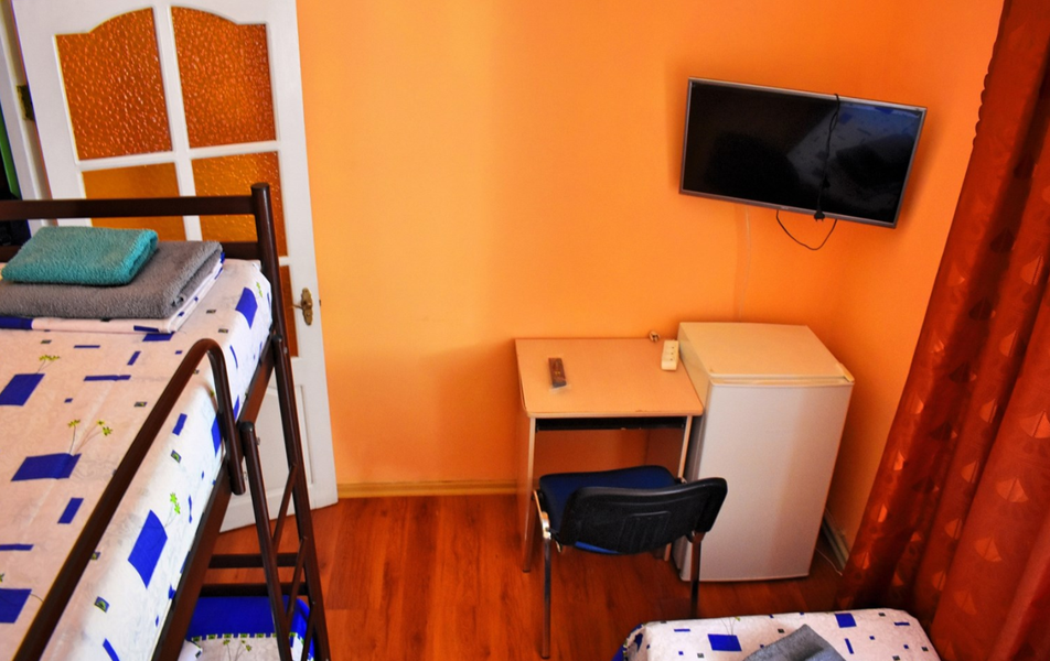 Семейный 4-местный 2-комнатный Количество комнат: 2-комнатный Тип номера: Семейный Кол-во номеров: 1 Кол-во основных мест: 4 Площадь (кв. м): 18 Мебель: вешалка, зеркало, кровати односпальные, кровать двуспальная, прикроватные тумбочки, стол, стулья, шкаф Оборудование: кондиционер, набор посуды, телевизор, холодильник Санузел: с душем, туалетные принадлежности, фен Сервис: Wi-Fi бесплатно, смена полотенец, смена постельного белья, уборка номера