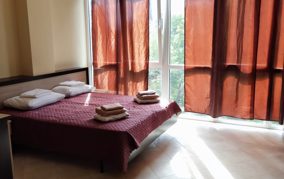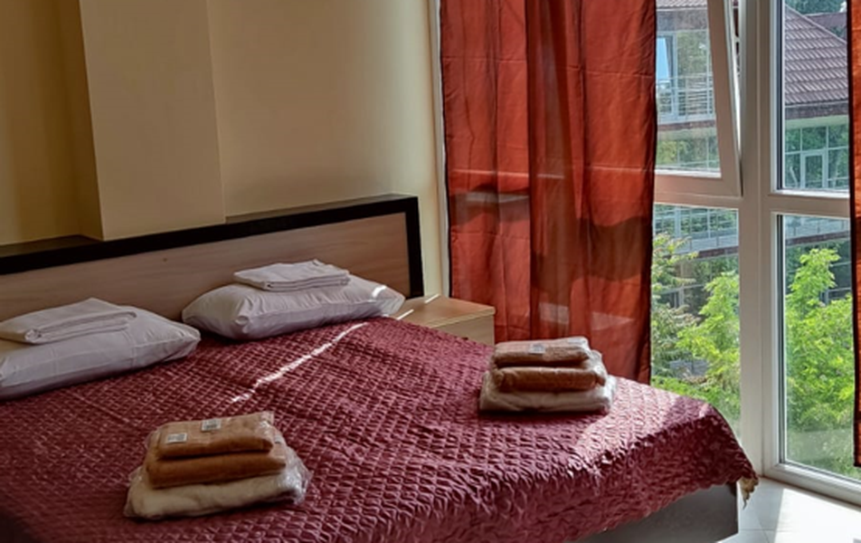 Комната 2-местная 1-комнатный (корпус Янтарный) Количество комнат: 1-комнатный Тип номера: Эконом Дополнительное место: кровать: диван-малютка, кресло-кровать или раскладушка Кол-во доп. мест: 2 Кол-во основных мест: 2 Корпус: Янтарный Площадь (кв. м): 15-25 Мебель: вешалка, зеркало, кровати односпальные: типа бокс-спринг, которые можно совместить, кухонная мебель, прикроватные тумбочки Оборудование: микроволновая печь, набор посуды, сейф, сплит-система, телевизор, электрочайник Санузел: с душем, туалетные принадлежности Сервис: Wi-Fi бесплатно, смена полотенец, смена постельного белья, уборка номера