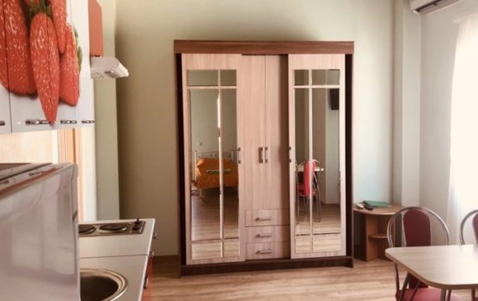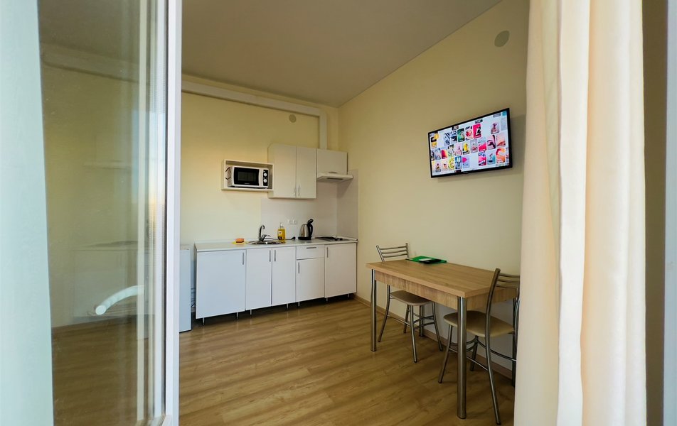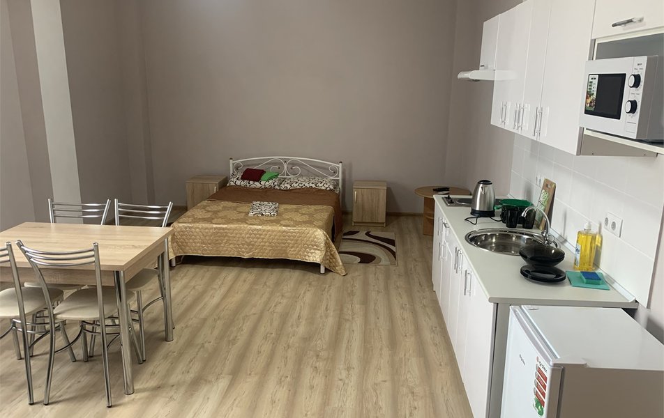 Студио Стандартный 2-местный Количество комнат: 1-комнатный Тип номера: Студио Дополнительное место: диван Кол-во доп. мест: 2 Кол-во номеров: 36 Кол-во основных мест: 2 Площадь (кв. м): 45 Мебель: диван, кровать двуспальная, прикроватные тумбочки, стол, столик журнальный, стулья, шкаф Оборудование: гладильная доска, кондиционер, микроволновая печь, набор посуды, плита электрическая, стиральная машина, телевизор, утюг, холодильник, электрочайник Санузел: бойлер, с душевой кабиной Сервис: Wi-Fi бесплатно: по территории, смена полотенец, смена постельного белья, уборка номера
