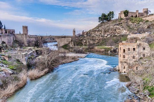 Ещё одна крепость - замок Сан-Сервандо 14 в., на реке Тахо, напротив Алькасара. Есть точка зрения учёных, что сначала её построили римляне, затем усовершенствовали арабы, а уже в 14 в. реконструировал архиепископ Тенорио. От римлян, к слову, остались и другие следы пребывания. В частности, - амфитеатр и акведук, которые тоже можно увидеть в Толедо.