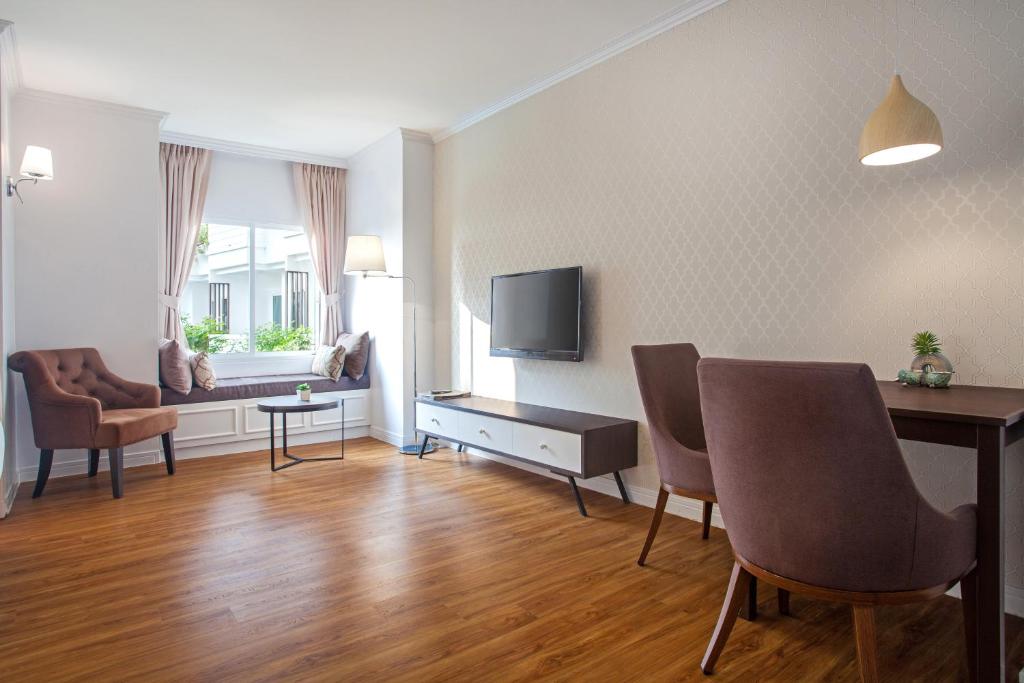 Однокомнатный номер оснащен двуспальной кроватью/2 односпальными кроватями, меблированным балконом, Wi-Fi, кондиционером, мини-баром, сейфом, телевизором, телефоном, холодильником, чайным набором, обеденным столом. Ванная комната с ванной/душем, феном, тапочками, халатами, набором гостиничной косметики.