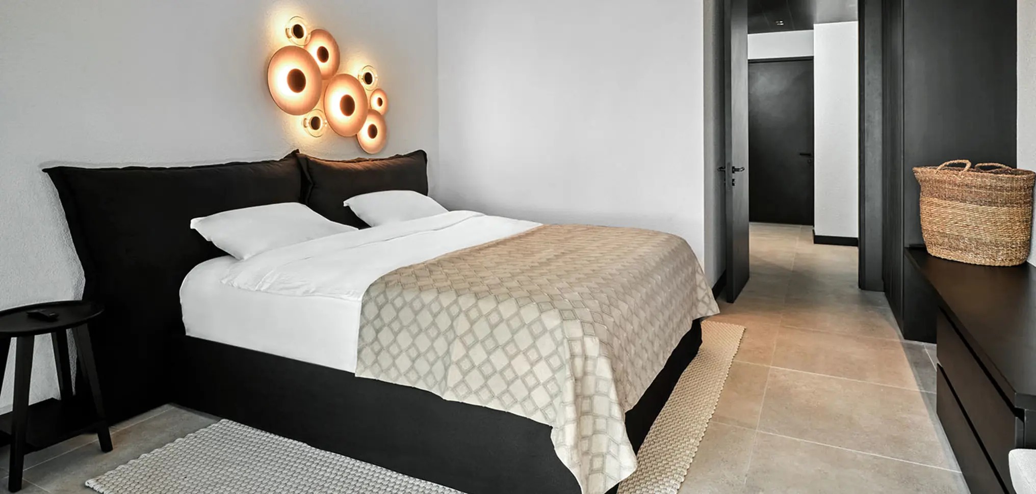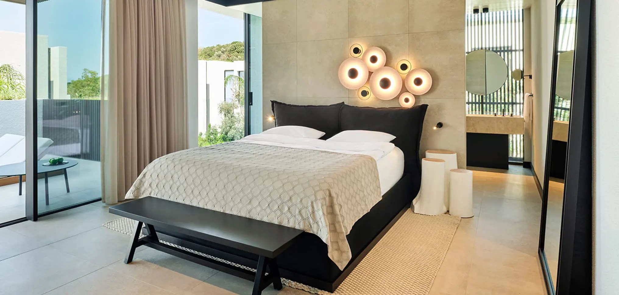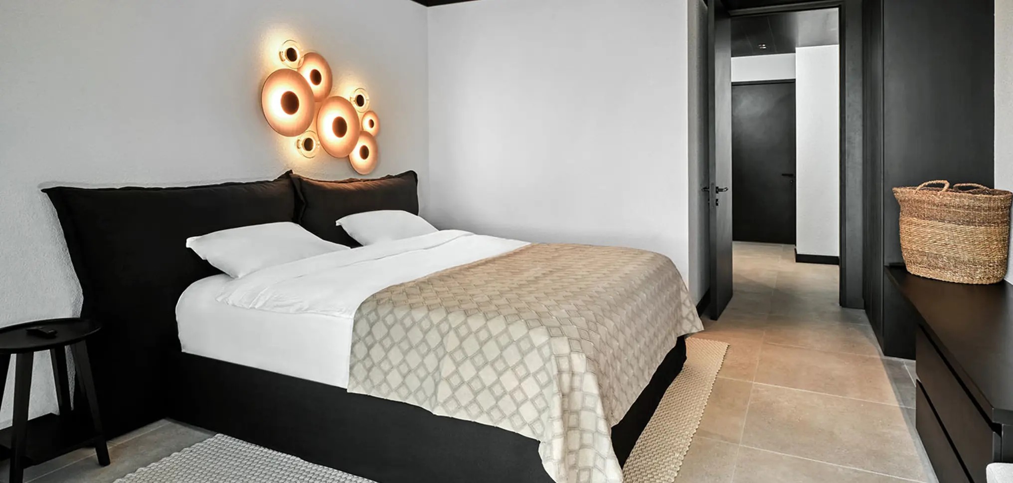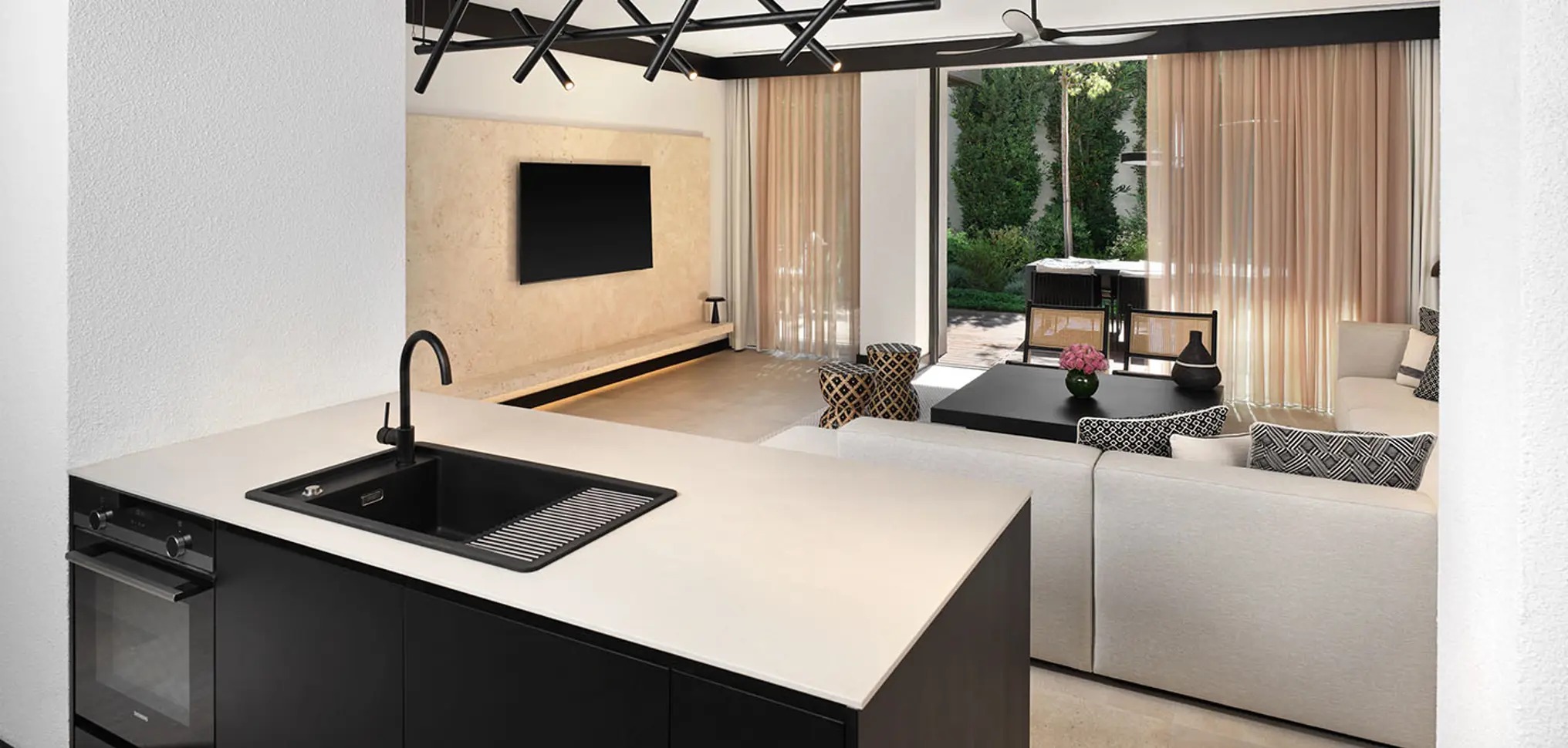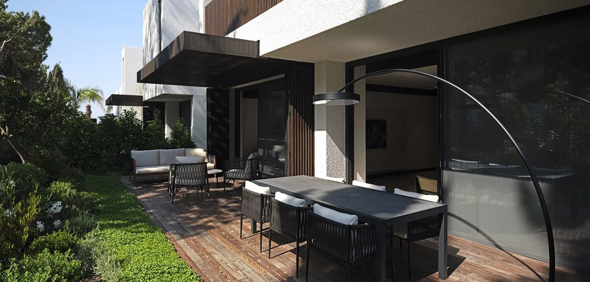Просторная, двухэтажная резиденция состоит из двух спальных комнат с одной двуспальной и 2-мя раздельными кроватями, гостиной с мягкой мебелью, кухни открытой планировки, двух санузлов с душем, гардеробной, меблированной террасы с видом на сад. Оборудован телевизором, кондиционером, Wi-Fi, сейфом, мини-баром, стиральной машиной, диваном и обеденным столом в саду, чайными принадлежностями, феном, гигиеническими средствами.