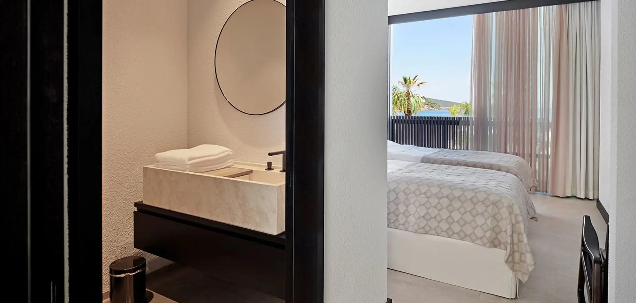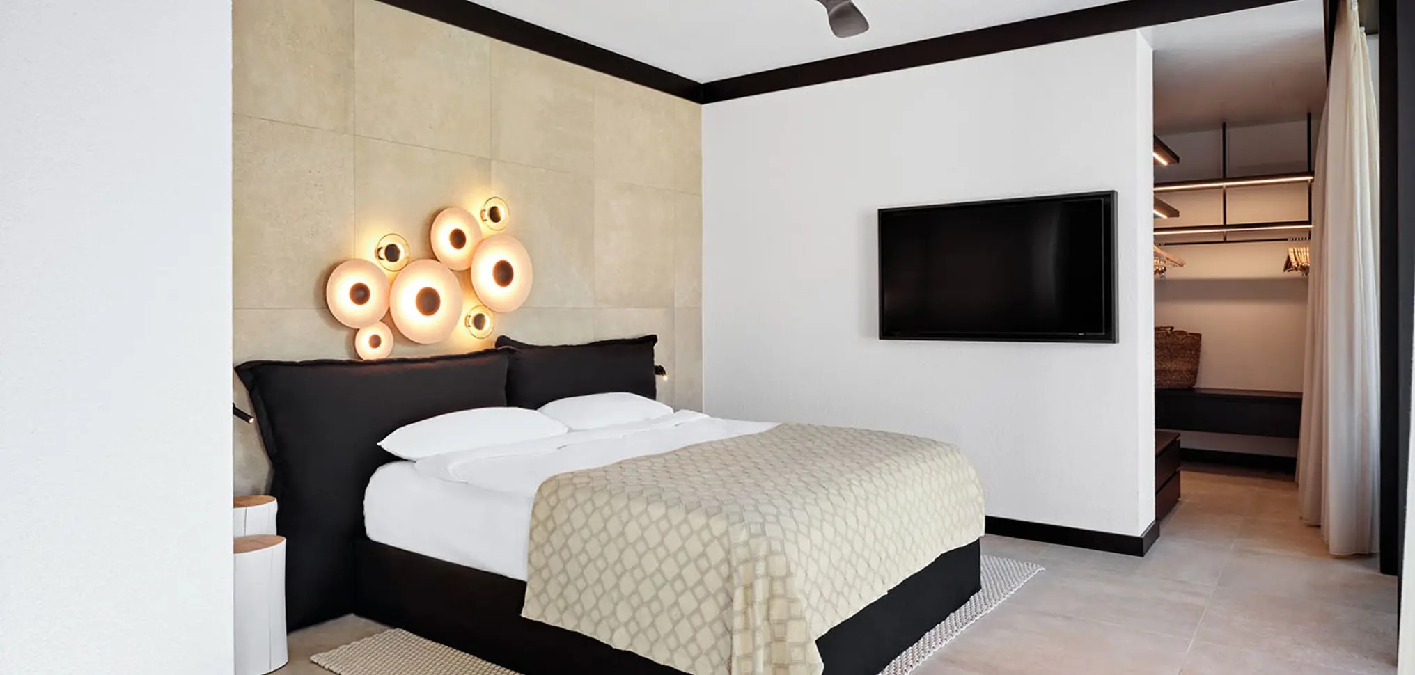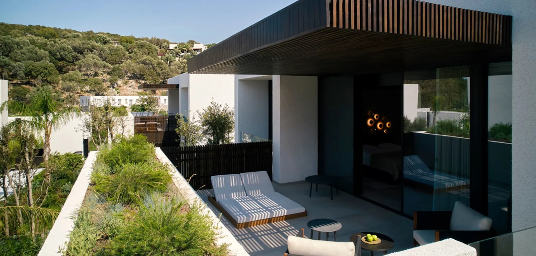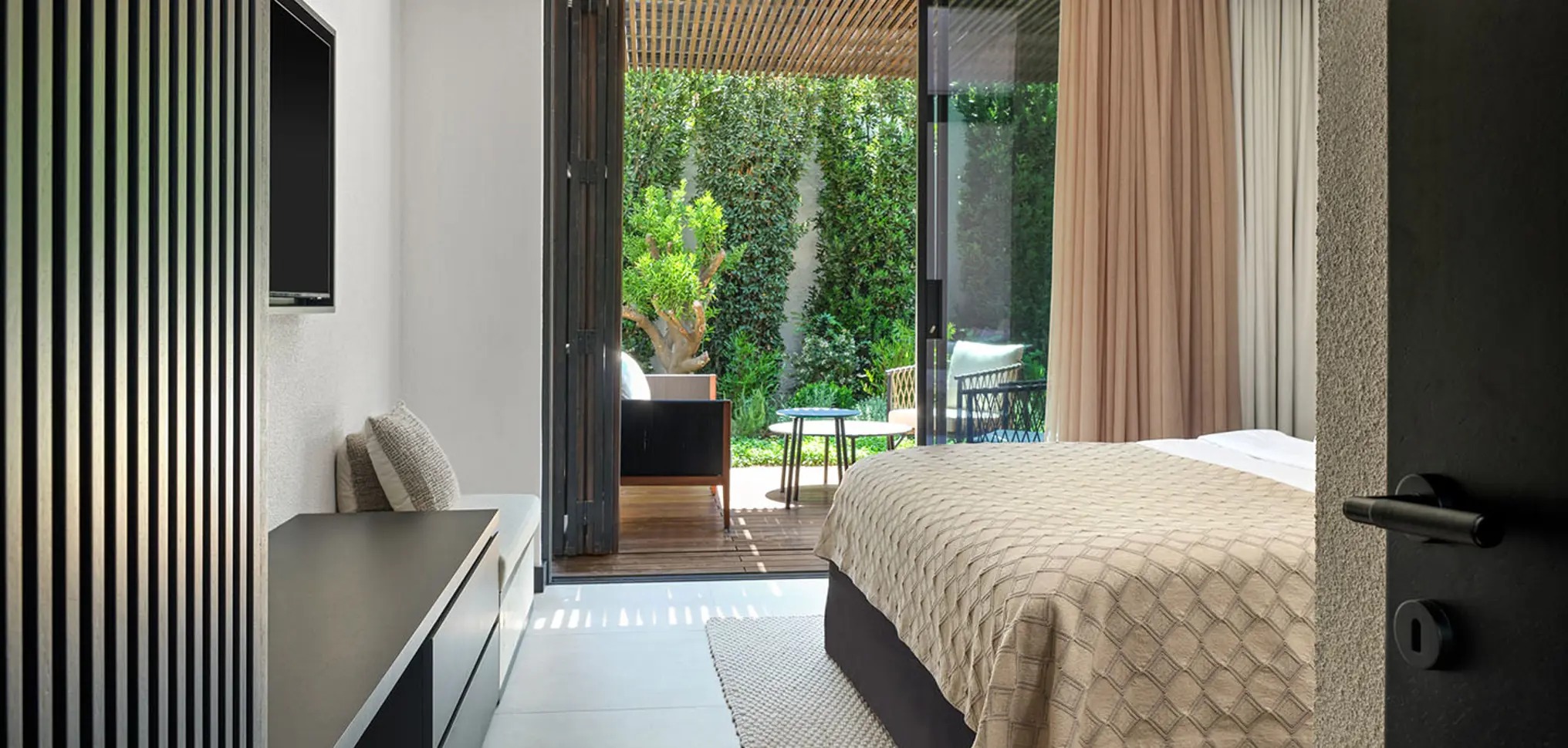 Просторная, двухэтажная резиденция состоит из двух спальных комнат с одной двуспальной и 2-мя раздельными кроватями, гостиной с мягкой мебелью, кухни открытой планировки, двух санузлов с душем, гардеробной, меблированной террасы с видом на сад. Оборудован телевизором, кондиционером, Wi-Fi, сейфом, мини-баром, стиральной машиной, диваном и обеденным столом в саду, чайными принадлежностями, феном, гигиеническими средствами.