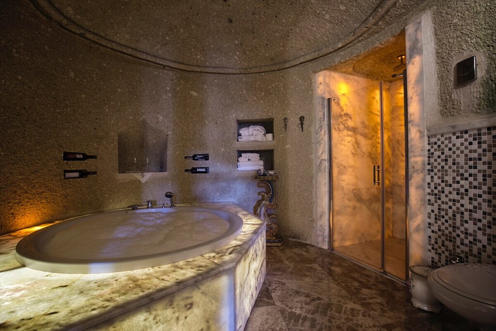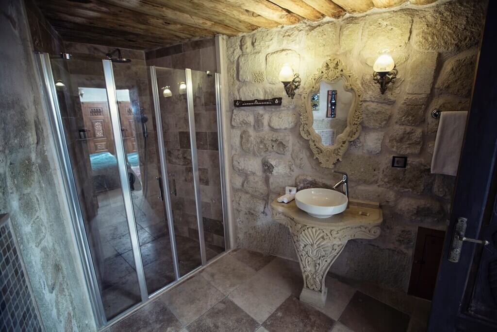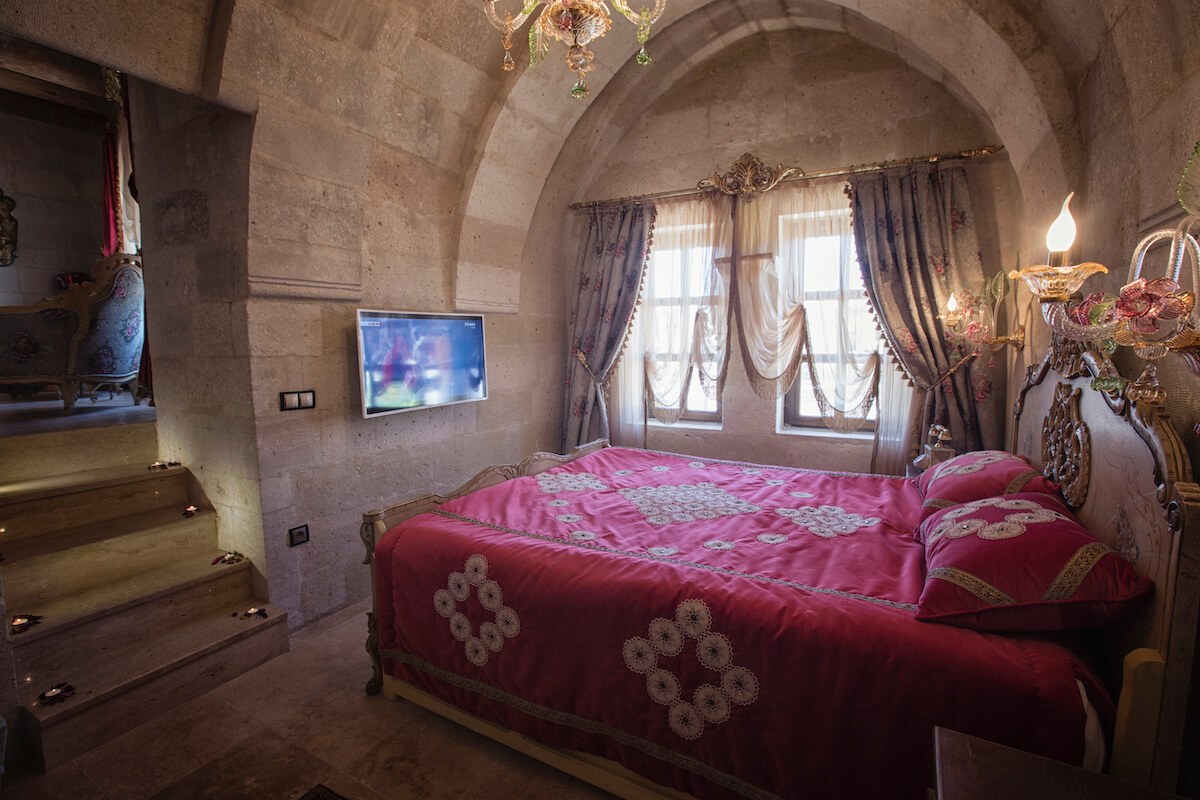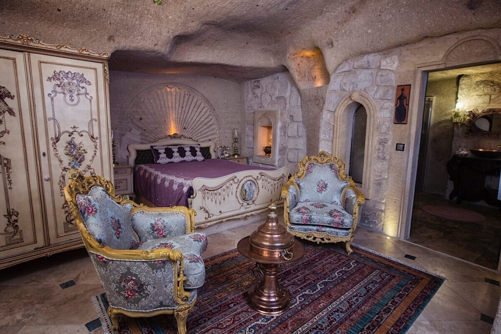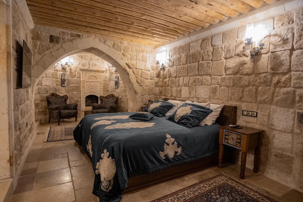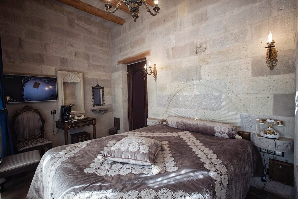 Однокомнатный номер с двуспальной кроватью, телевизором, кофемашиной, сейфом, телефоном, Wi-Fi, чайным набором. Санузел с ванной или душем, феном, набором гостиничной косметики. Некоторые номера оборудованы турецкой баней.