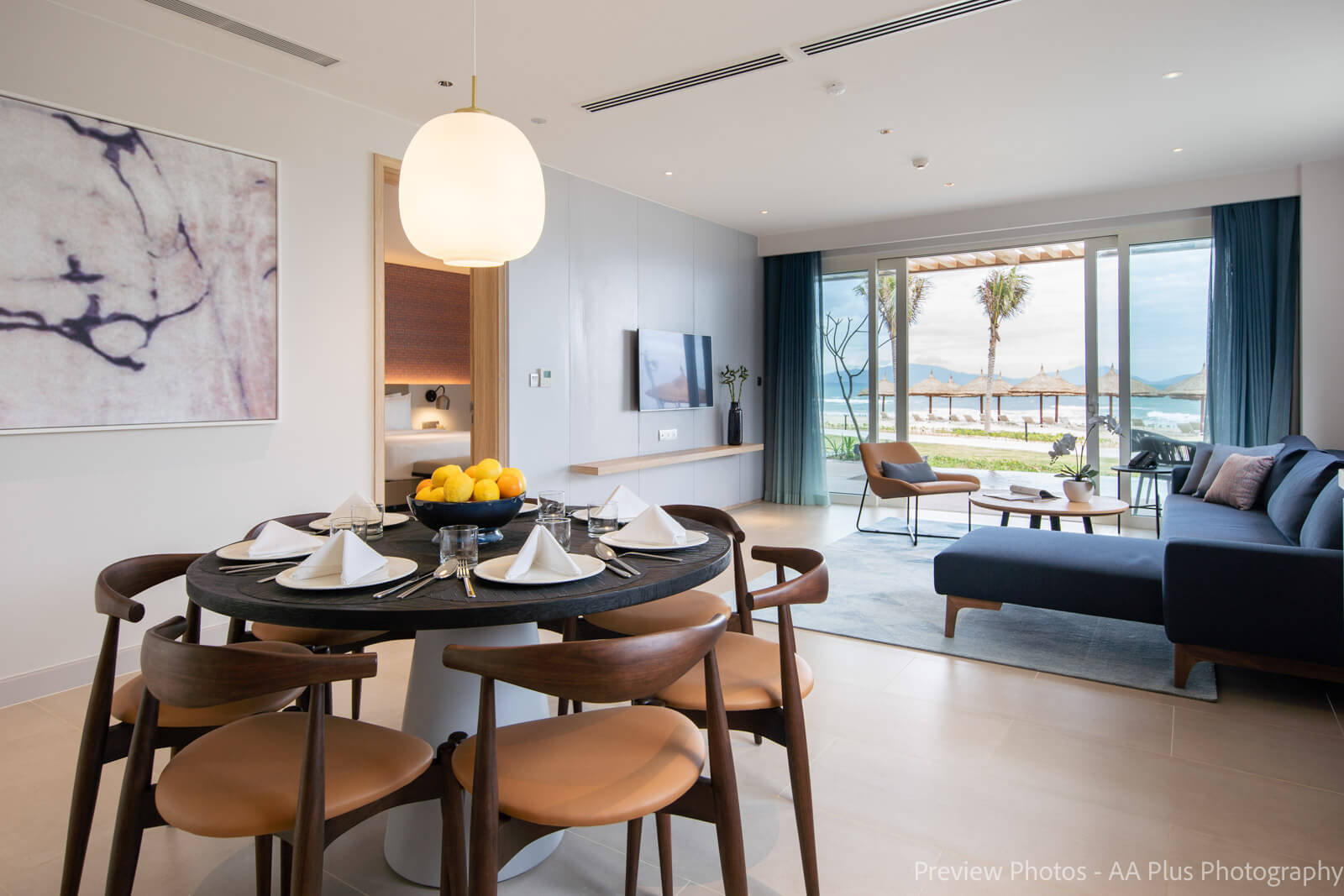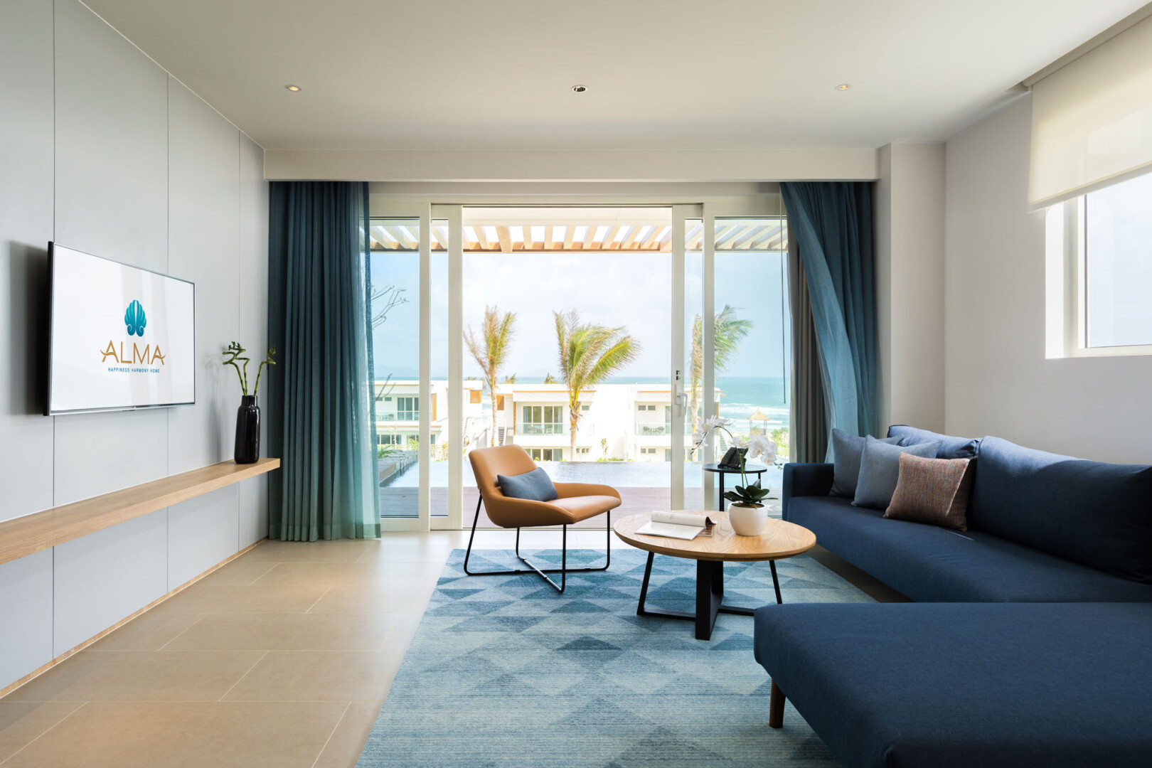 Для нас отдых в Alma Resort был шикарным, даже изысканным (отдыхали вдвоем и ребенок 14 лет): шикарная большая вилла по европейским стандартам со своим бассейном прямо у моря, огромная гостиная с кухней и круглым столом. Тишина и отсутствия толп, как в турецких таких же больших отелях, уединенные места среди пальм и бассейнов, шикарный спа (перед массажем можно сходит в хамам или сауну), хорошо делают и маникюр и педикюр за цены дешевле московских). Йога по утрам всего за 600 рублей для новичков с индусом. Первые 2 дня осваивались, понимали, что где Территория большая. На всей территории интернет, несколько русских каналов. Вызывали багги через ватсап, все быстро и удобно. Ребенок свободно перемещался сам по локациям: аквапарк, поесть, лобби, вилла.. Насчет еды: у нас было все включено (желтые браслеты): ресторанов и локаций много, ужины по системе шведский стол ежедневно, некоторые порции показались нам маленькими, но их можно заказывать сколько хочешь! Совет: надо скачать приложение Alma или написать русскоговорящему сотруднику вьетнамцу Хану ( 84937800646), он там местный герой среди русских и палочка-выручалочка, он сможет вам помочь с выбором ресторана, решить любую вашу проблему или что-то объяснить. Вообще весь персонал вьетнамцы очень дружелюбные с гостями. Они даже готовят русским борщ, сырники, винегрет, шашлыки и хлеб (это все включено в обед), очень стараются для русских️ Так что малыша вы всегда накормите "домашней" едой. Ужины шведский стол проходят иногда в рыбном ресторане у моря, иногда в азиатском (там вкусные роллы), и в итальянском (пицца, там вкусная говядина). Вечернее шоу только одно и то же ежедневно почти, но сходить один раз его стоит, нам очень понравился водный театр, в конце можно фотографироваться с актерами и попробовать себя в роли управляющего кукольными фигурками, очень аутентично. Хотя стоит 1500 рублей один билет. Это не включено. Вся территория очень ухоженная и зеленая. Стоит признать, что самый вкусный кокос, который мы где-либо пробовали, это в Alma Выехать на такси в Нячанг 30 минут по времени и 1100 по цене примерно. Есть такси у ресепшн, но лучше скачать приложение MAXIM (оно на русском) и оплачивать наличкой (ДОНГИ) таксисту. На ресепшене меняют доллары на долги, кстати, по хорошему курсу. Минусы: нет, если только придираться - в минибар ставить больше воды (нам приходилось добирать по локациям, где кафе и бары), пляжные полотенца располагать на вилле (у нас же бассейн, это логично), расписываться мокрой рукой на баре у бассейна за кокос было не удобно А так большое спасибо за шикарный отдых! Русскоговорящему Хану и команде отдельный респект️ Забыла написать про море : пляж чистый, море чистое, песок шикарный, за ним видно, что следят, всегда есть спасатели, вход очень пологий и долгий (если нет волн), зависит от ветра, он появляется после 14-15 часов, хорошо было купаться с 8 утра. Уже скучаем